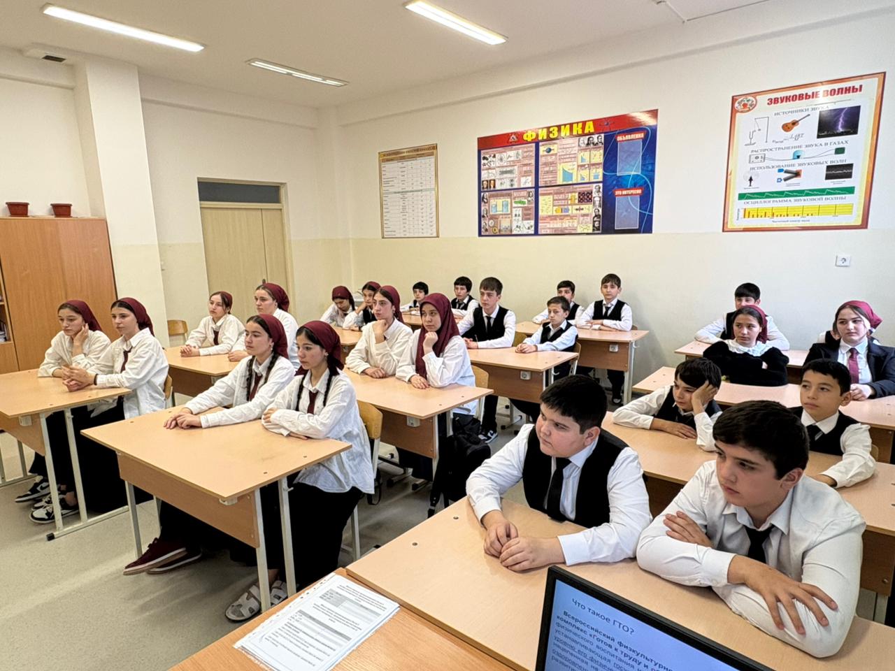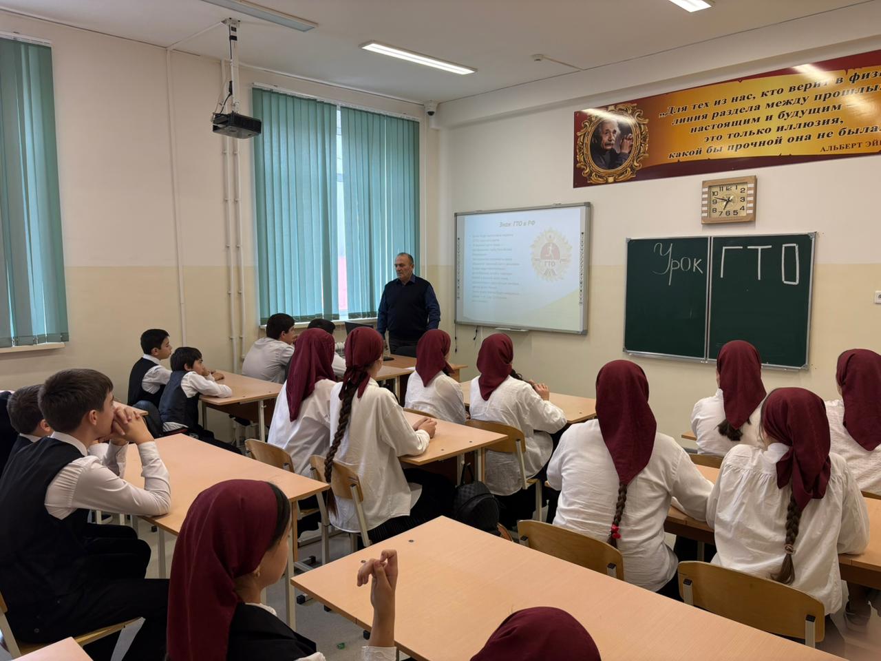 В нашей школе учитель физической культуры, Асламбек Сайд-Алиевич, провел Всероссийский урок ГТО.